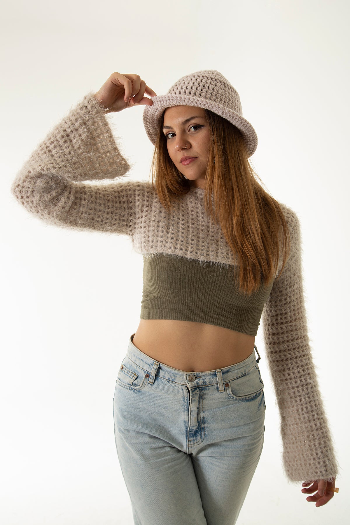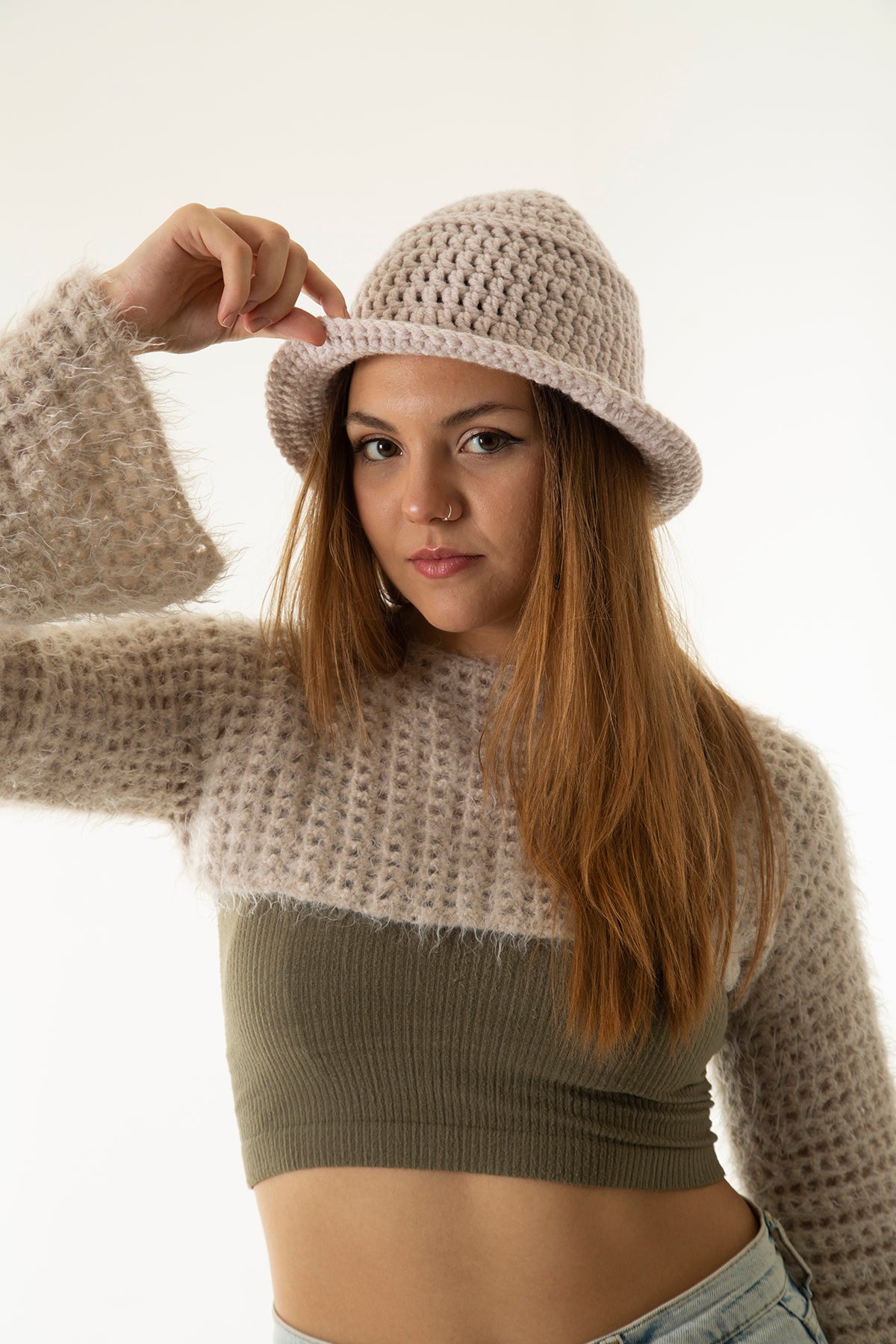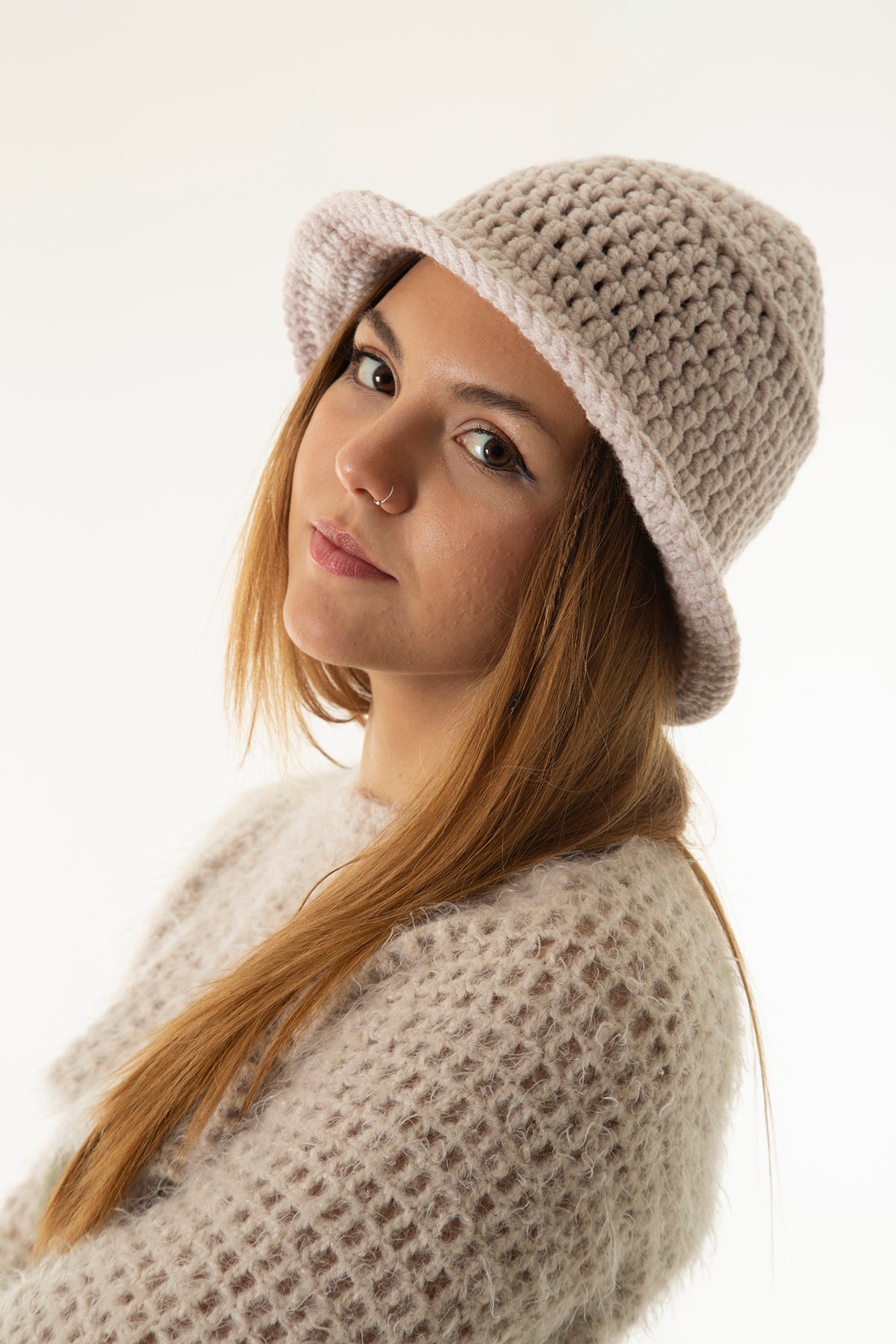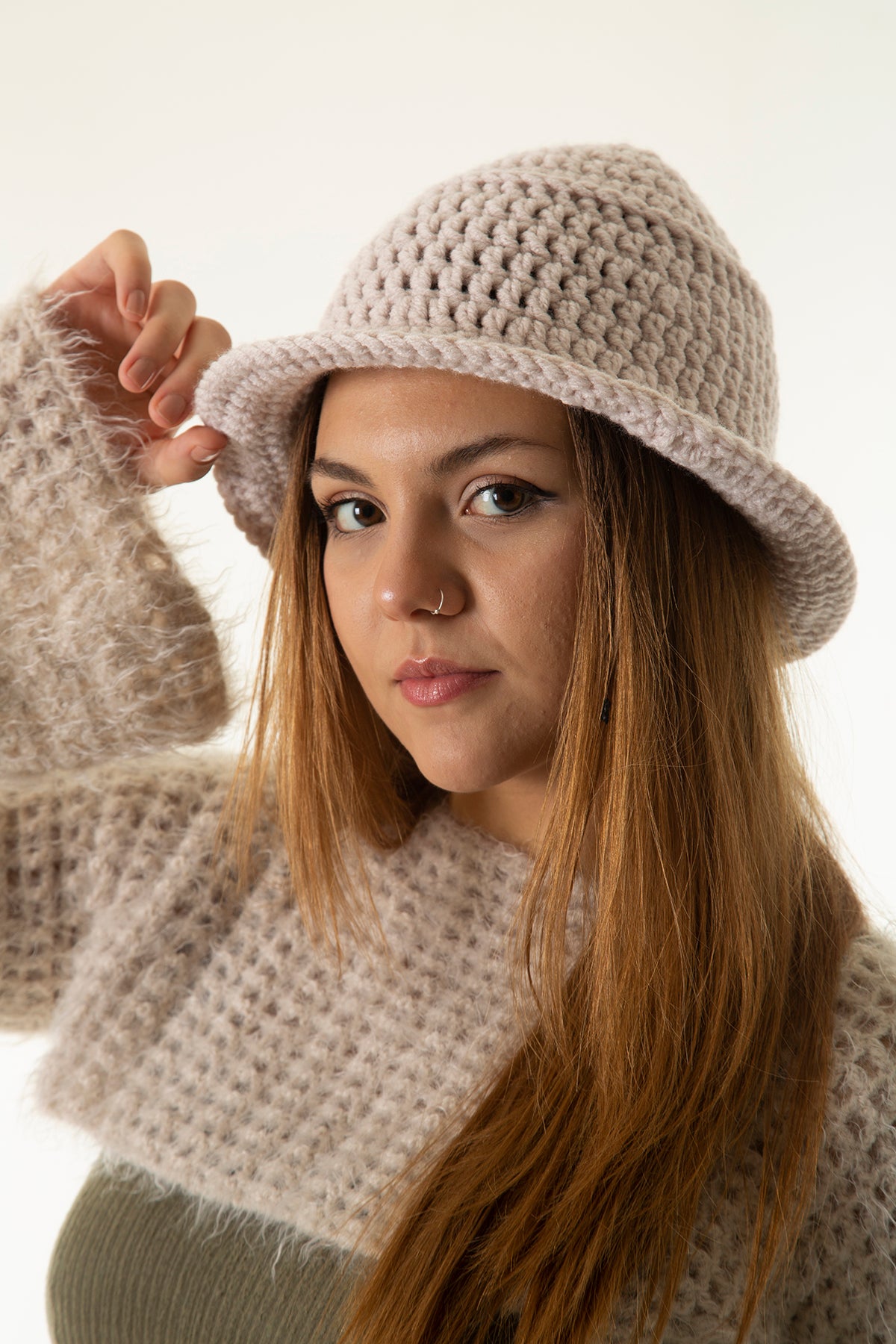 Krem El Örgüsü Bucket Şapka